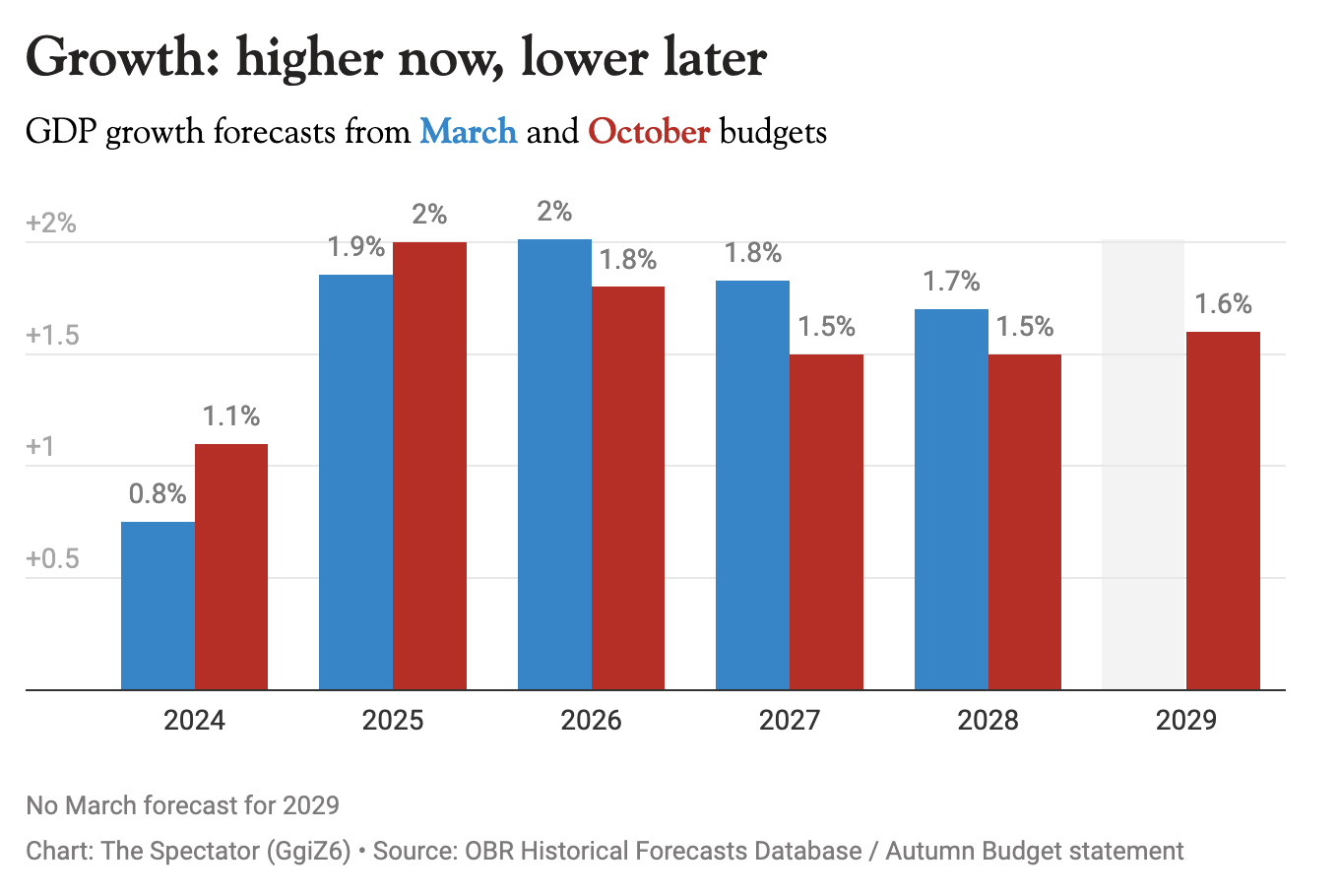 Meanwhile the government is in no position to say that the money will be found through growth measures, after the OBR published very disappointing forecasts for the next five years, which actually downgrade GDP estimates in the latter half of this Parliament. For all the pain of tax hikes, and all that additional borrowing, where are the gains? Ministers will emphasise that the gains come in the longer-term, when capital investment is realised as new infrastructure, new transport and new hospitals. There is merit in this point, but markets have to be convinced that the pathway there is sustainable, and that the money spent on those projects is really going to lift the economy. So far, they seem rather unconvinced.