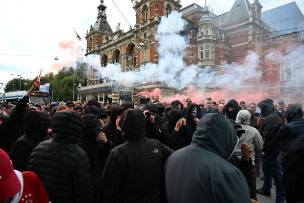 And what do you know, they’re at it again. Last night, four days after those events, disorder broke out again in Amsterdam, with a tram car set on fire and clashes between rioters and police. Video footage reportedly shows rioters chanting ‘kankerjoden’, Dutch for ‘Jewish cancer’. But how could this be? All those discord-sowing Israeli football fans are long since back in Tel Aviv. Did they manage to spark this riot from 2,000 miles away? Boy, the Jews really are all-powerful.