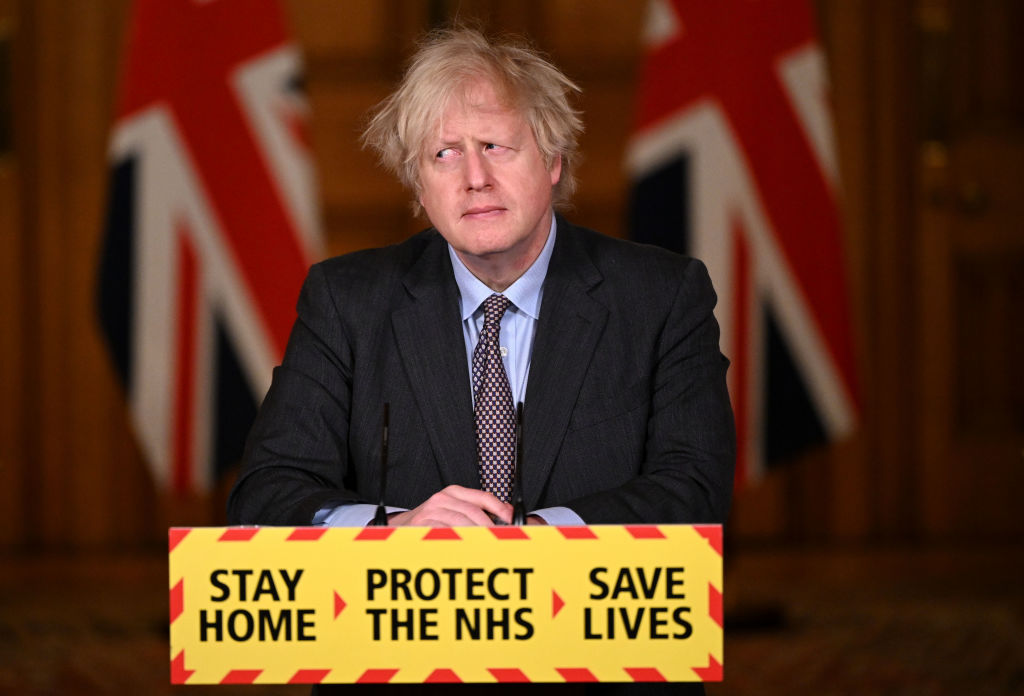 Boris Johnson gives a coronavirus press conference, 22 February 2021 (Getty Images)