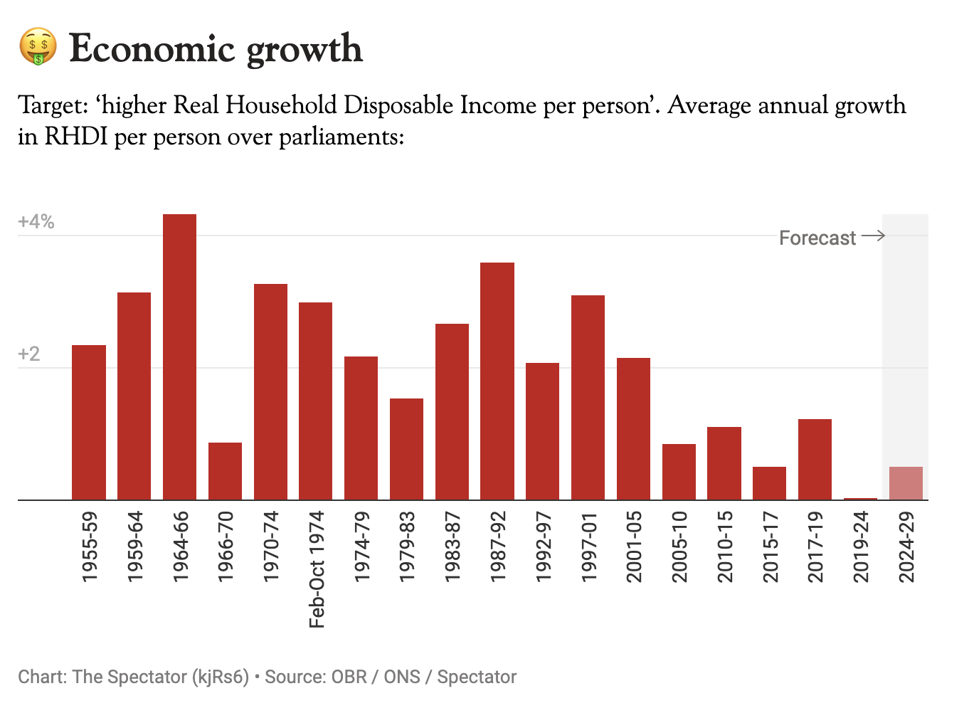 On living standards, Starmer promised that they will be ‘higher in every region of the country’. Which sounds very much like the white paper promise that ‘pay, employment and productivity will have risen in every area of the UK’ by 2030 – as well the gap between the top-performing and other areas having closed.