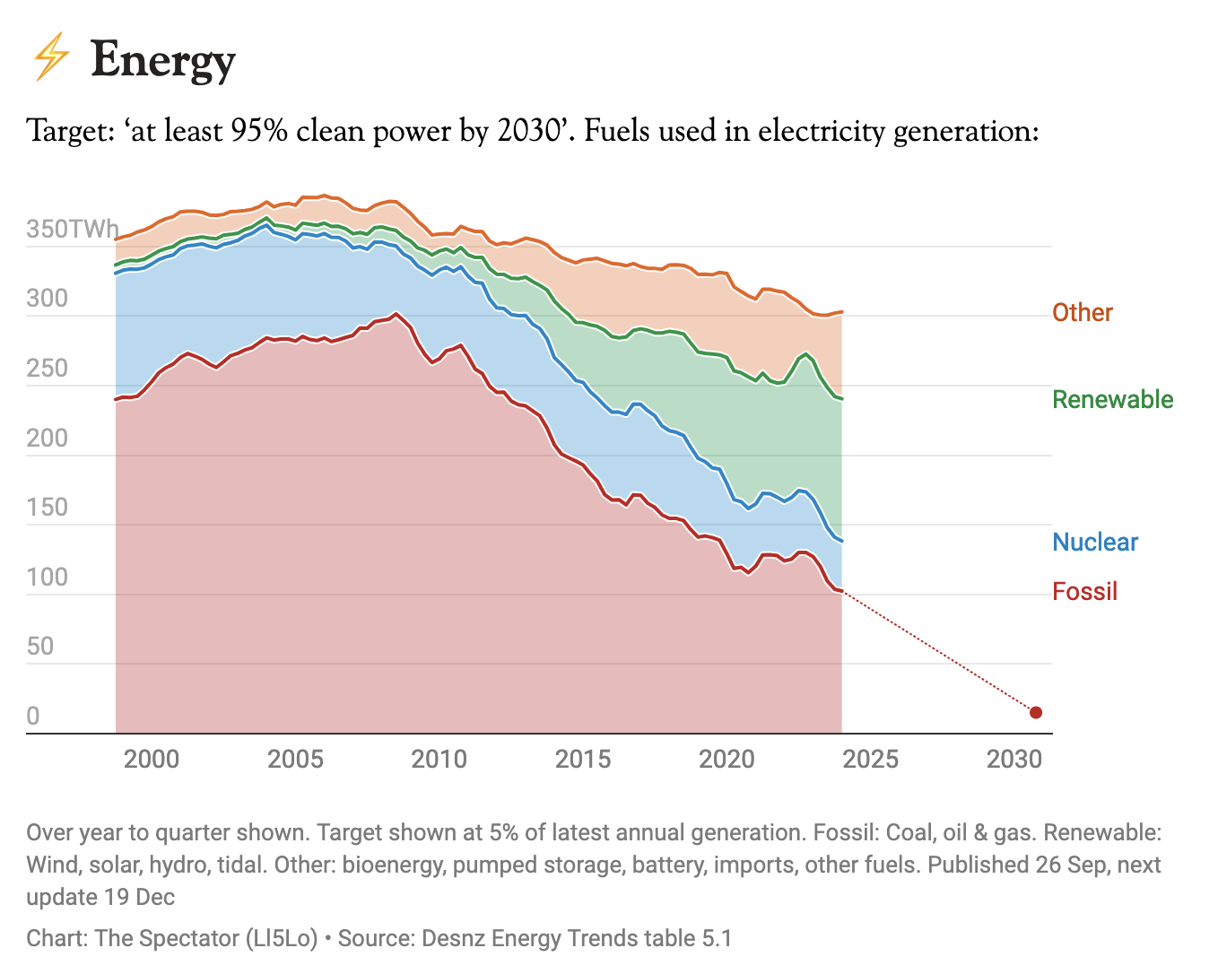 Labour’s manifesto promised a zero-carbon electricity system by 2030, while keeping a ‘strategic reserve of gas power stations to guarantee security of supply’. That means a target of just 5 per cent of electricity generation over 2030 being from gas, Starmer said yesterday – similar to the Conservative aim for 95 per cent ‘low-carbon’ electricity in that year.
