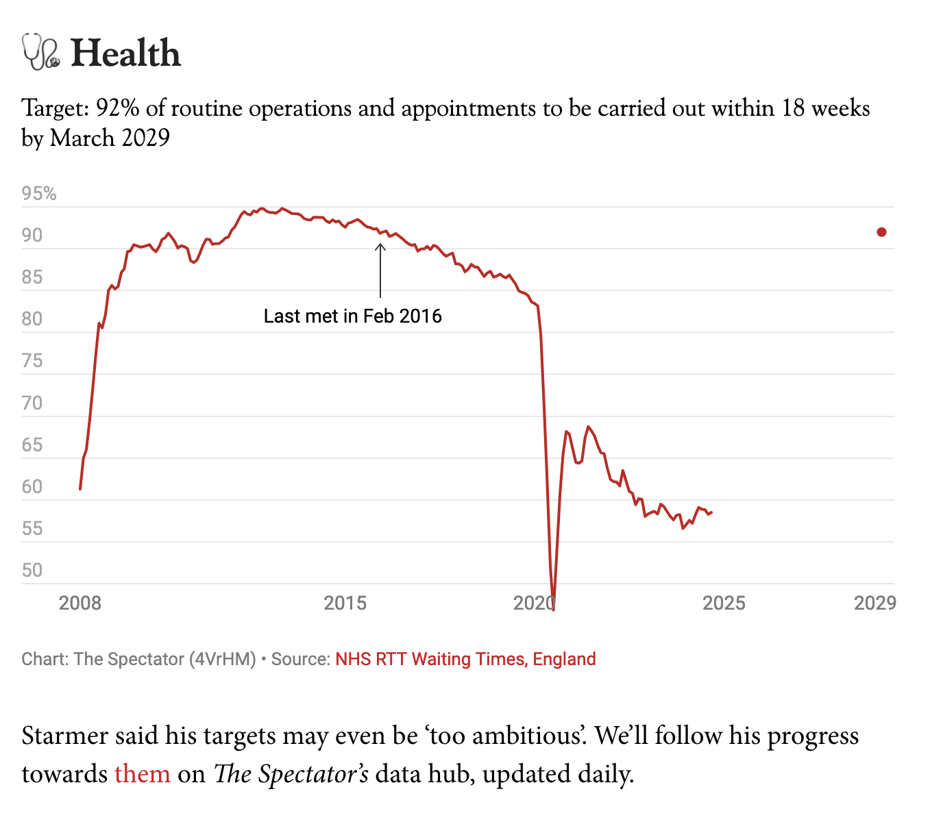 Starmer said his targets may even be ‘too ambitious’. We’ll follow his progress towards them on The Spectator’s data hub, updated daily.