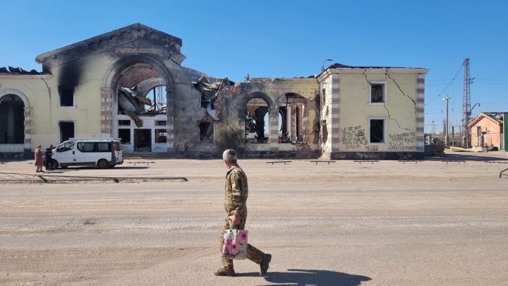 In the morning darkness at the reception of our central Kharkiv hotel, 25 miles from the Russian frontlines, the night porter’s face was creased with sleep. As we made our way towards the door to catch the early express to Kyiv, he handed us a small keyring with a yellow and blue plastic ornament. They had been made by local children.