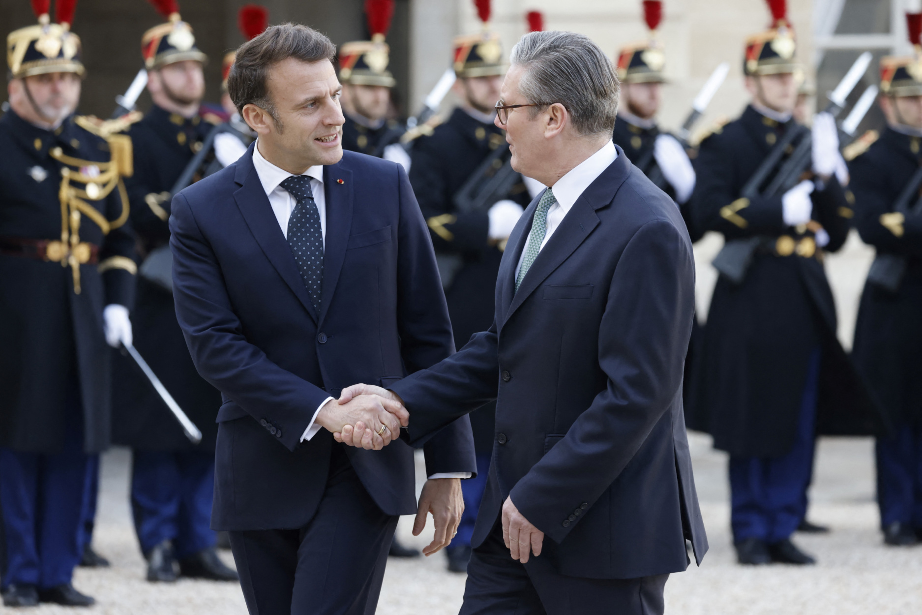 Emmanuel Macron welcomes Keir Starmer at the Elysee Palace before a summit on European security, 17 February 2025 Getty Images