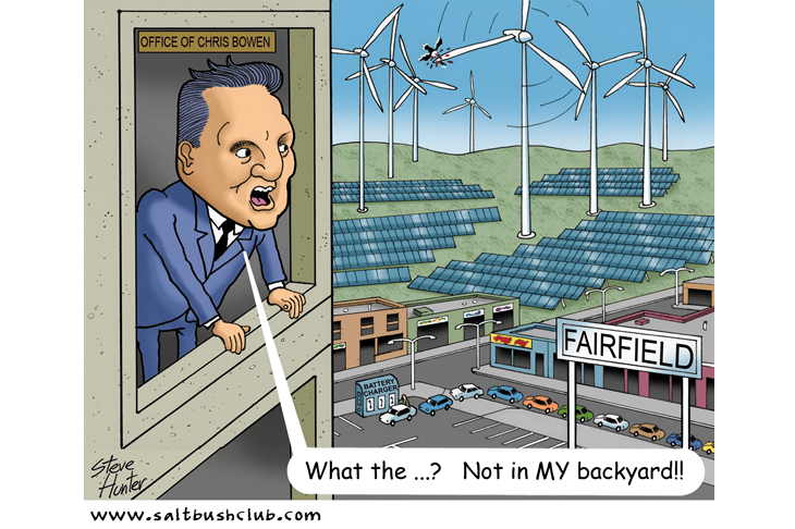 But battery fires are not uncommon, and they are very hard to extinguish. So big batteries should be located beside every fire brigade shed, starting in Fairfield (the Sydney electorate of Australia’s Energy Minister Chris ‘Blackouts’ Bowen). Every university should also install a big battery near their Chemistry Department so students can study the chemistry of lithium battery fires.