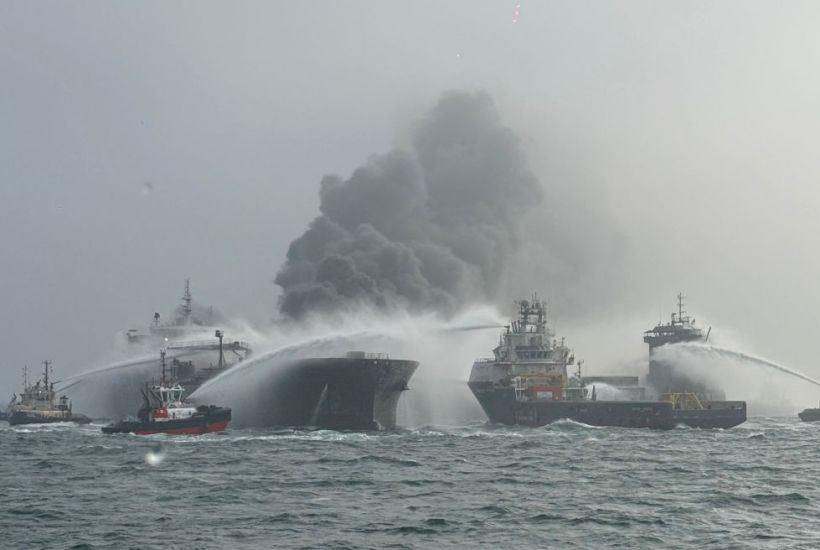 First, it’s likely to be cock-up rather than conspiracy. True, it may seem suspicious that a US government jet-fuel cargo is involved: Iran and others would enjoy that. Plus there has been a spate of suspicious anchor-dragging, cable-breaking incidents involving Russian and Chinese ships, and it’s pretty difficult to crash ships by accident these days what with all the sat-nav, radar and radio they possess. So it’s right not to rule out foul play yet. But tracking shows that the container ship Solong sailed in a straight line for around a hundred miles, along a course it has regularly travelled before. If it was aiming to hit the Stena Immaculate tanker it would have adjusted course, probably at the last minute, to aim at it.