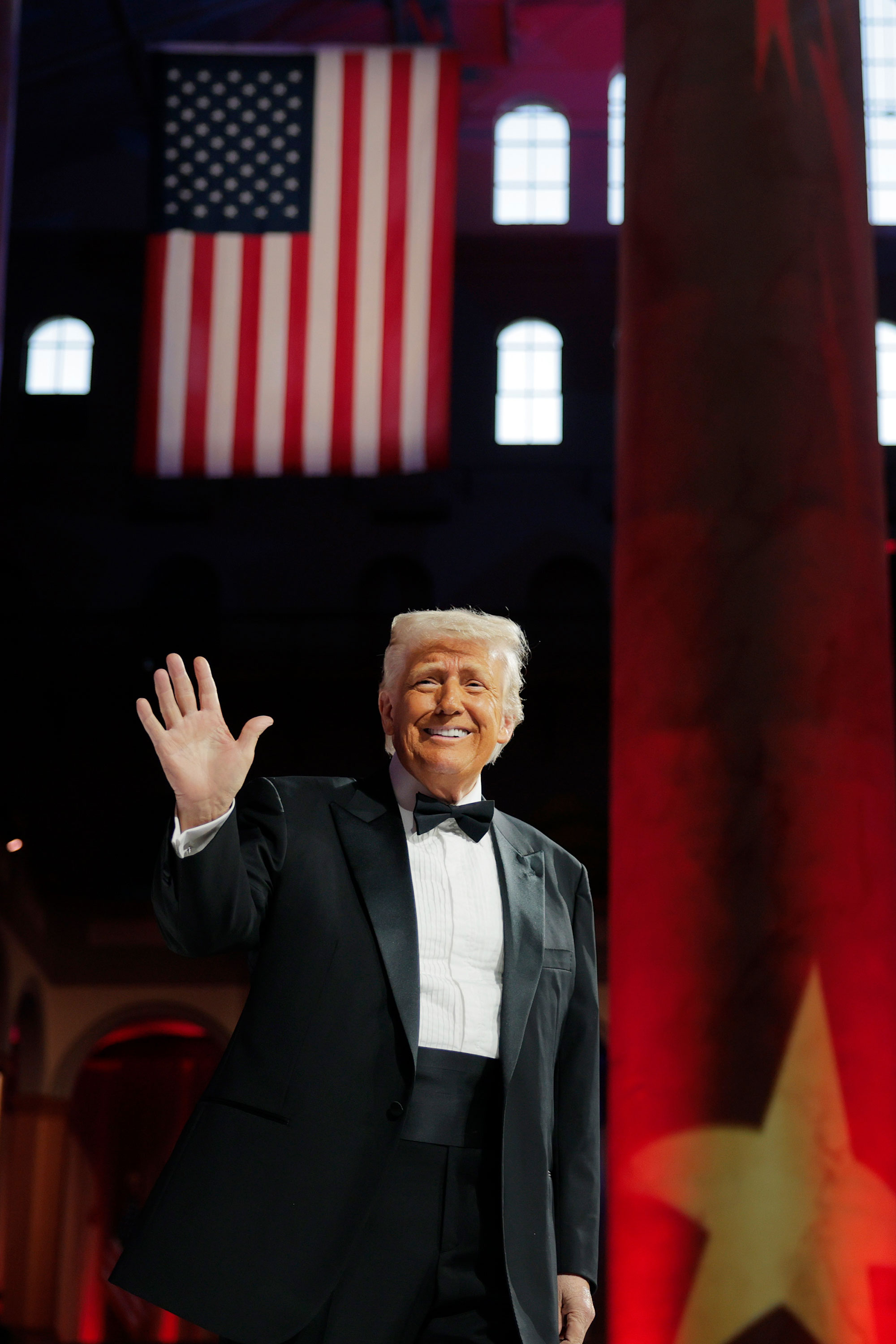 Donald Trump planting the ‘MAGAnolia’ and (right) attending the NRCC dinner this week Daniel Torok/The White House/getty images