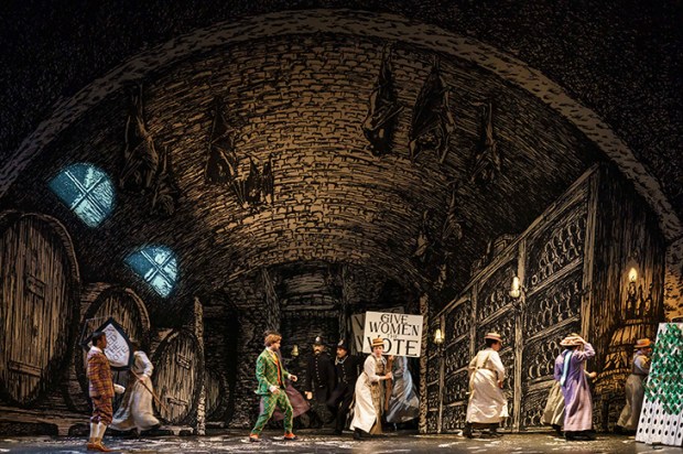 Ragamuffins wave tricolores, showgirls in fishnets are tastefully wicked, and Méphistophélès (Adam Palka) sings suavely in his tailcoat. Faust (Stefan Pop) barks away downstage with arms thrown wide; it’s not the most seductive of voices but Carolina Lopez Moreno is ideally sweet and luminous as Marguerite. She appeared to be enjoying herself hugely. It ends with heavenly choirs, billowing clouds, and the intervention of Gounod himself in a pair of angel wings. If you’d begun to wonder just how seriously McVicar takes this big gooey wedge of operatic Camembert, there was your answer: exactly as seriously as it deserves.