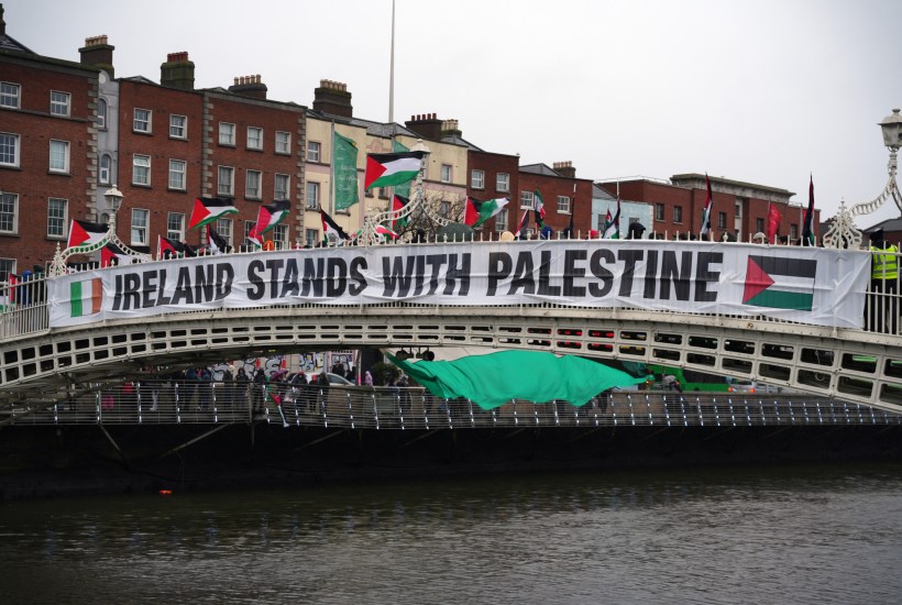 It’s inescapable. It’s all over Dublin, of course, long a hotbed of leftish activism. You won’t walk five metres there without seeing a youth wearing a keffiyeh and a look of smug self-satisfaction. The Palestine flag flutters at Trinity College. Even the Hamas flag has been waved at protests in the capital: leftists for fascism.