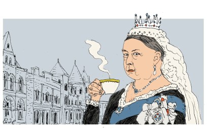 I’m sipping Madagascan hot chocolate out of white-and-gold Haviland Limoges, and nibbling on Venezuelan milk-chocolate bonbons, under an oil painting…