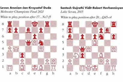 1. Anish Giri 2. Nona Gaprindashvili 3. Jamie Njoku-Goodwin 4. Alireza Firouzja 5. Magnus Carlsen–Hikaru Nakamura 6. 2 Qf4+! gxf4…