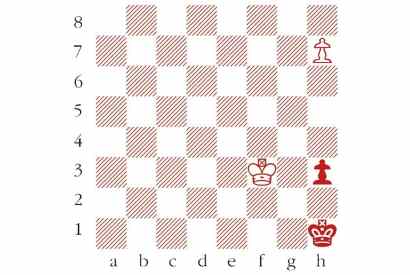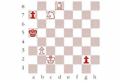 White to play and win. The conclusion of an endgame study by Henri Rinck. The imminent promotion of the g-pawn…