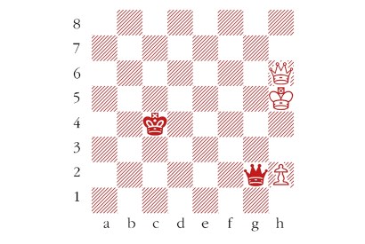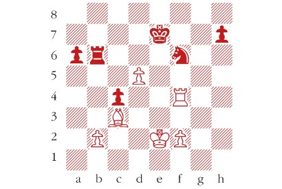 White to play and draw. The conclusion of an endgame study composed by J. Hašek (1951). Black is preparing a…