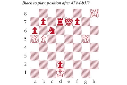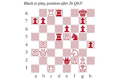 Black to play. Efimov–Bronstein, Kiev 1941. Normally White seeks glory in the King’s Gambit, but here Bronstein scored a lightning…