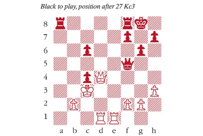 White to play, a variation from McShane–-Kamsky. In the game above, I was hoping to see 31…Qa5, as I had…