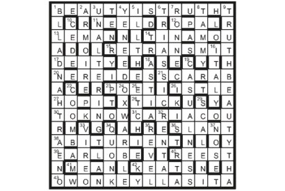 Corrections of misprints give A GRECIAN URN. The POET (23) reporting its message (perimeter + 4 30) is KEATS (42). First…