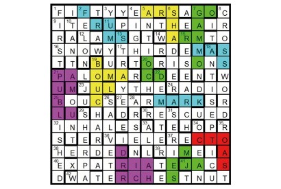 Of the unclued entries, three combine to form a phrase (five words) describing three more (four foreign-language words). The remaining…