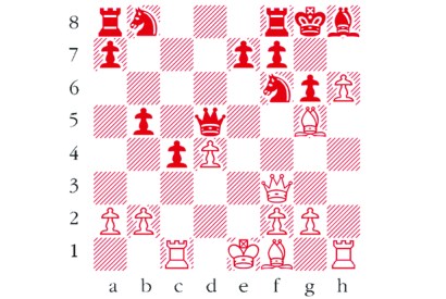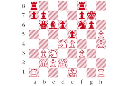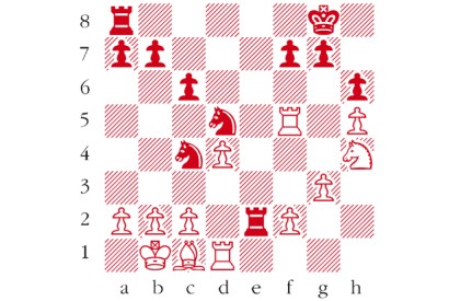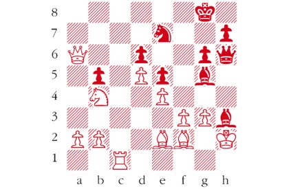 White to play. This position is from Tal–Benko, Candidates 1959. Black has just advanced with … e5, attacking the white knight.…
