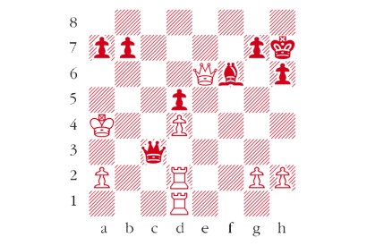 Black to play. This is from Paulsen-Morphy, New York 1857. Having sacrificed his queen to expose the white king, Morphy continued…
