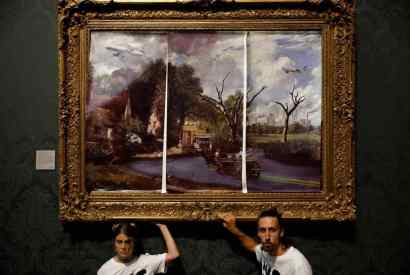 On Monday eco-protesters glued themselves to the frame of Constable’s painting The Hay Wain and covered it with an altered…