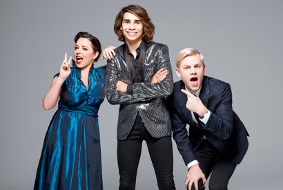 Isaiah Firebrace (centre) with Myf Warhurst and Joel Creasy