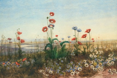 Andrew Nicholl A distant view of Derry through a bank of wild flowers