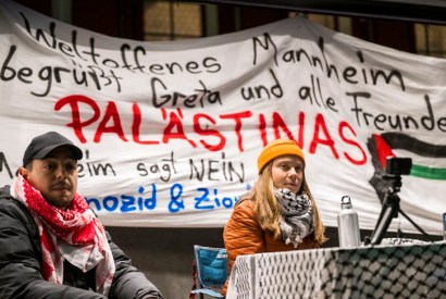 ‘F-ck Germany … and f-ck Israel!’ giggled climate mascot Greta Thunberg from behind a lectern draped in a keffiyeh while…