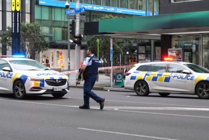 Two people are dead after a gunman armed with a pump-action shotgun stormed a building in Auckland’s central business district…