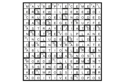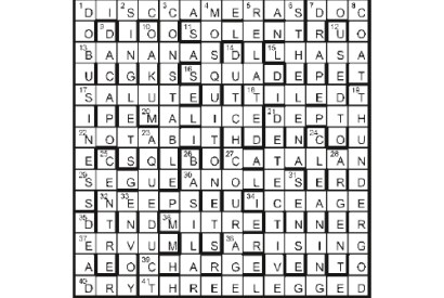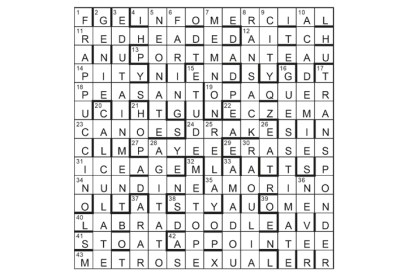 Redundant words were 12A virgin, 16A crazy, 38A mammal, 18D state, 21D greed, 25D tendon, 34D extremist. These respectively defined…