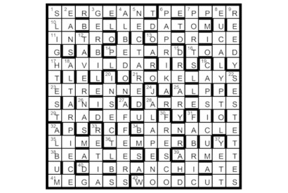 The thematic BEATLES ALBUM (38 32) is SERGEANT PEPPER (1A 6A). 1A defines 17, and can be divided into words…