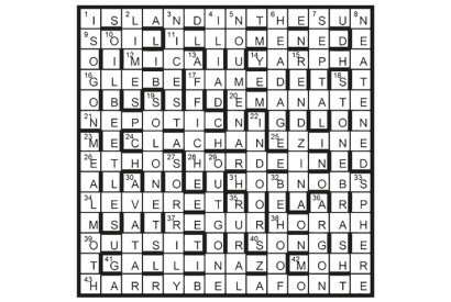 SOIL (9) — cryptically indicated by ISLAND IN THE SUN (1A), the title of a SONG (40) recorded by HARRY…