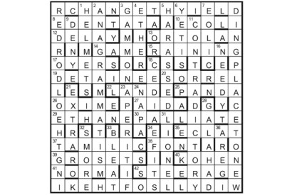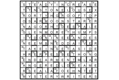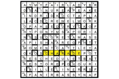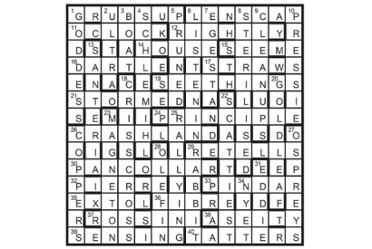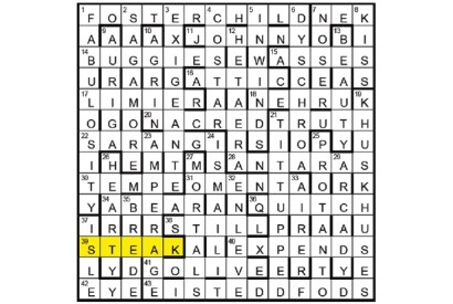One unclued light (hyphened) is a 38 of a word hidden in the grid. Two unclued lights are definitions of…