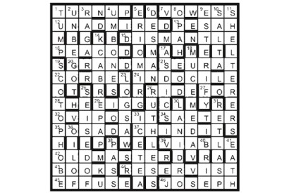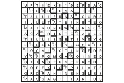 Two clues are without definitions; their answers form the name of a person with a leading part in four works…