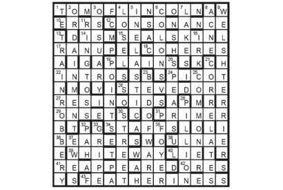 Unclued lights (two hyphened) are words (all but one of which are in ODQ) from a poem whose title appears…