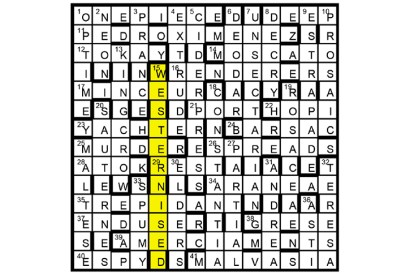 Unclued lights are all sweet wines. WESTERNISED, an anagram of DESSERT WINE, was to be highlighted.  First prize Erin Barrack,…