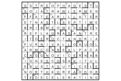 All unclued entries are, unusually, not all unclued; all are different and there are no proper nouns. A repeated cryptic…