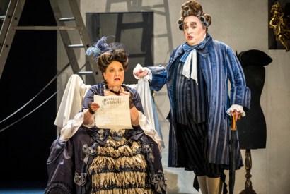 Near the end of Elena Langer’s new opera Figaro Gets a Divorce, as the Almaviva household — now emigrés in…